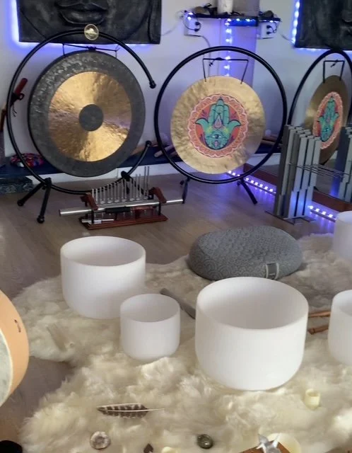 Vibration-based regulation using crystal bowls, gongs, and chimes. The body often calms even if the mind resists.